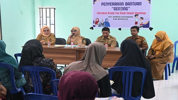 Pemberian Nutrisi Kepada ibu hamil, baduta dan balita dihadiri langsung oleh Kepala Dinas Pengendalian Penduduk dan Keluarga Berencana (DisdaldukKB) Kabupaten Bengkalis Paulina dalam sambutannya mengatakan Genting merupakan gerakan gotong royong masyarakat untuk mewujudkan generasi yang sehat, cerdas, kuat dan tidak stunting, dengan pemberian bantuan yang bersumber dari kepedulian para pihak sebagai Orang Tua Asuh bagi keluarga berisiko stunting.